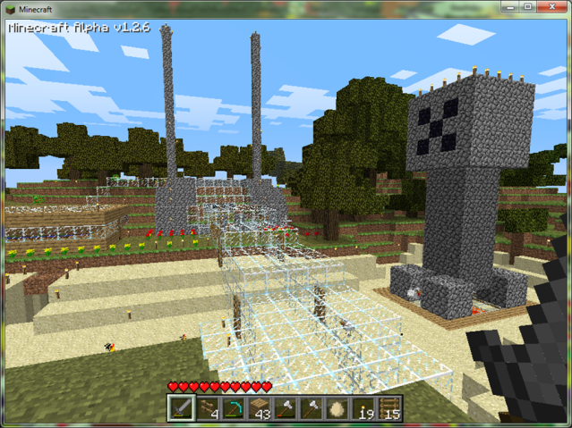 But I digress! Here is a poorly made Creeper statue which doesn't really resemble one much because I made it too small. Hooray! My brother initially said I should make one as a joke, but I decided to take him up on that offer and spawned this eyesore. Still, I guess it adds character...?