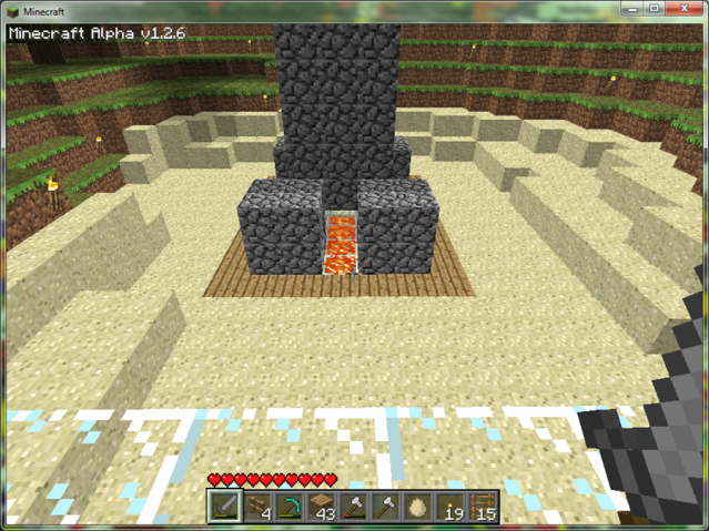 This is normally where I incinerate stuff, but I sorta kinda took the lava so I could put it under my hideous Creeper statue, and never replaced it. Doop