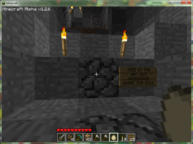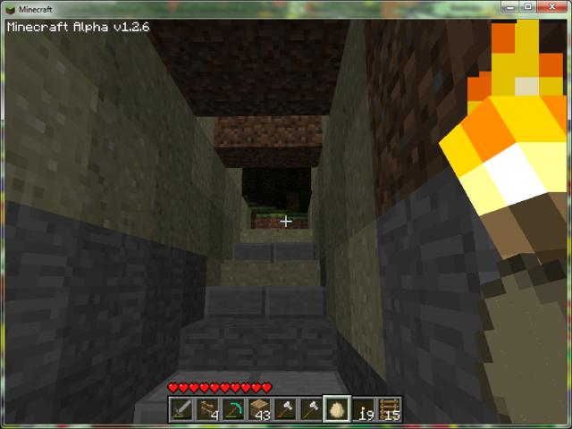 This was the first proper cave system I ever found. Despite being on Peaceful at the time, I was still paranoid as hell. Also I am now holding an egg for some reason.
