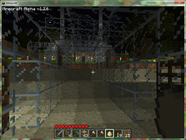 The next morning I revisited the opening I had created and there was still a Creeper there. And then I went to my front entrance and there was one waiting for me there as well! Hooray! Anyway, yet more glass ceilings, to prevent the same situations that plagued me every time I left from the front entrance.
